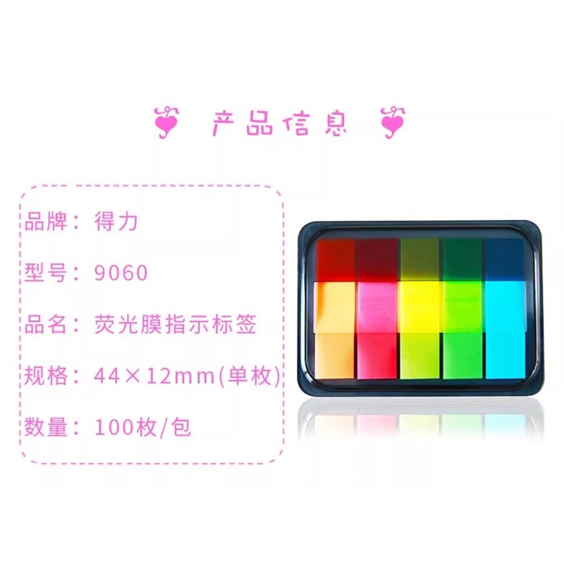 得力 9060 記事貼 熒光指示貼標(biāo)簽抽取式分類貼彩色索引貼小清新便簽貼