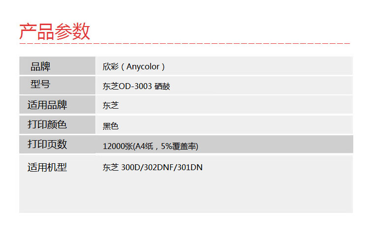 欣彩(Anycolor)OD-3003 硒鼓(專業(yè)版本)AR-D300S鼓架 適用東芝 300D 302DNF 301DN 打印機(jī)曬鼓